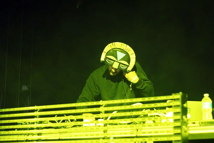The most unphotographable (Yep, just made that word up) DJ on planet earth. He performs behind this veil, which separates him from the crowd because for him, it’s all about the music. Prior to this, I had never seen him perform so this little surprise was definitely quite enjoyable. It intensified the artistic aspects if his set because he was able to incorporate multiple visual elements by projecting images and graphics onto the veil. His tunes were tight and he had the entire place jumping and tripping out on life and good times.